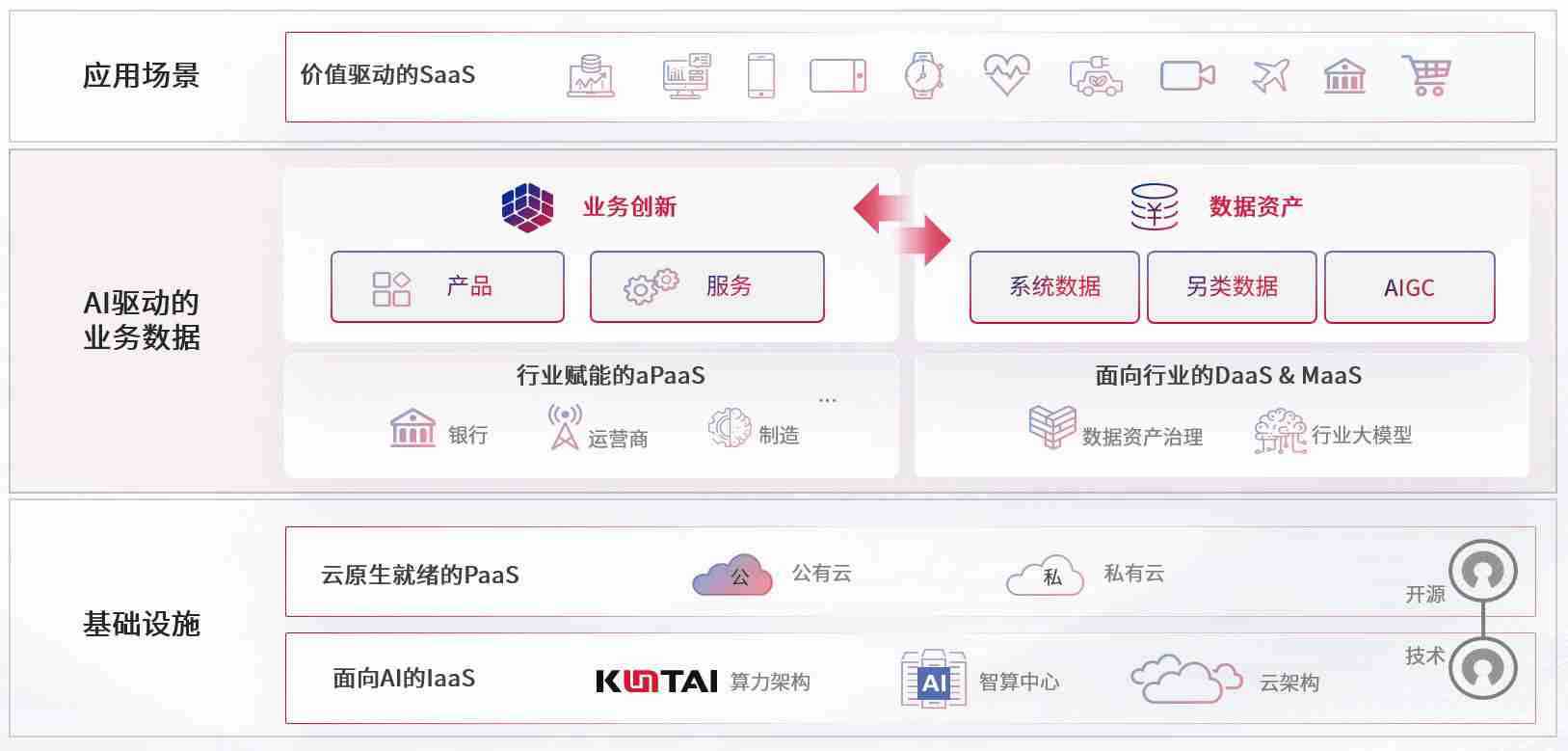 数字时代,,围绕企业数字化转型的关键要素,,,,菠菜导航数码开创性的提出数云融合战略和技术体系框架,,着力在云原生、、、、数字原生、、、AI原生和信创产业上架构产品和服务能力,,,为处在不同数字化转型阶段的快消零售、、、、汽车、、、金融、、、医疗、、、政企、、、教育、、运营商等行业客户提供泛在的敏捷IT能力和融合的数据驱动能力,,,构建跨界融合创新的数字业务场景和新业务模式,,,,助力企业级客户建立面向未来的核心能力和竞争优势,,,,全面推动社会的数字化、、、、智能化转型升级。。。。