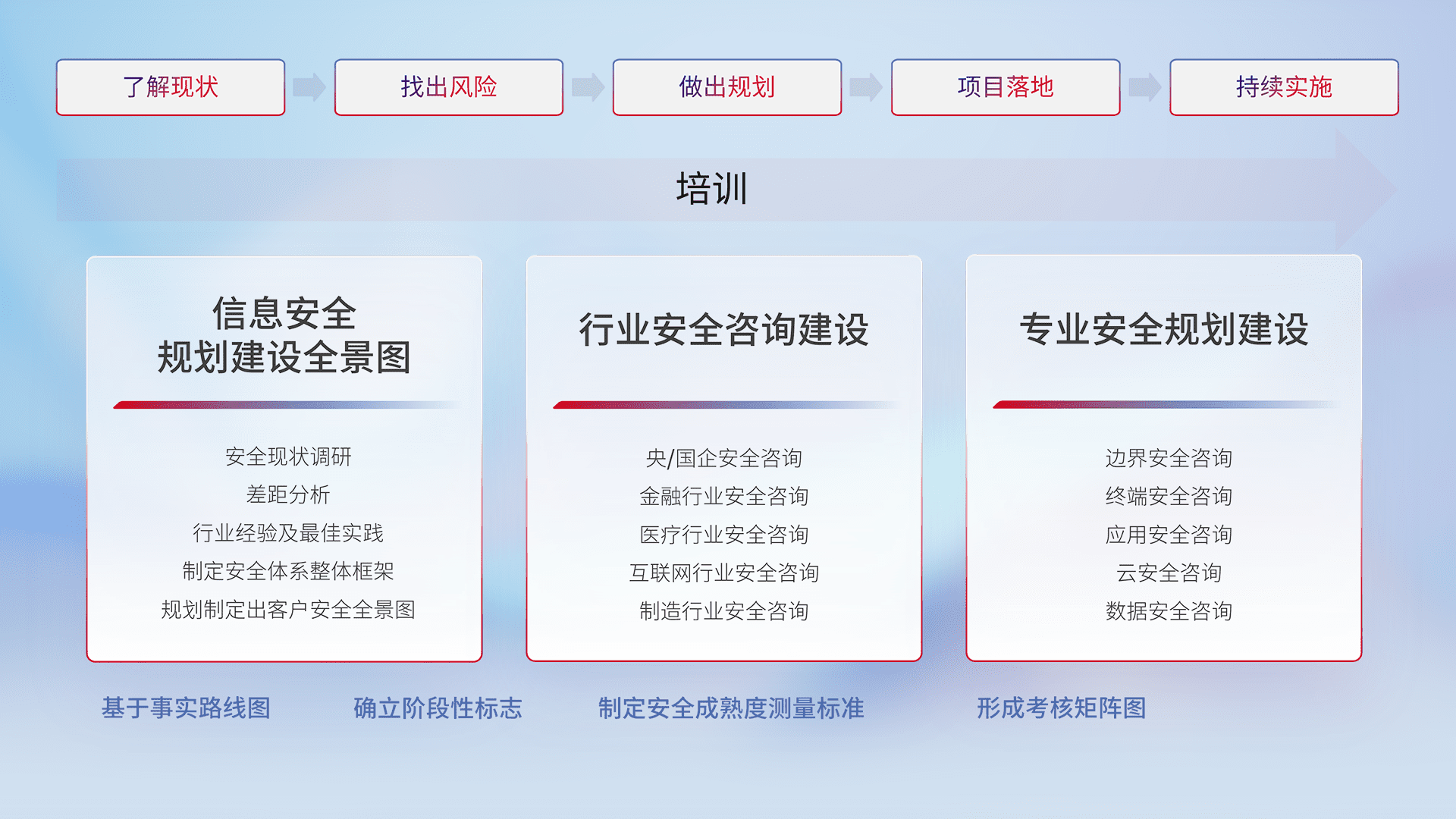 针对客户行业特性,,,,将宏观的安全战略和需求,,通过专业的交付服务,,,实现项目落地,,为客户提供标准规范的集成交付服务。。。
